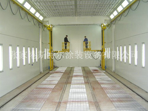 (6)油漆室選擇上進風、下換氣的干井式油漆室。